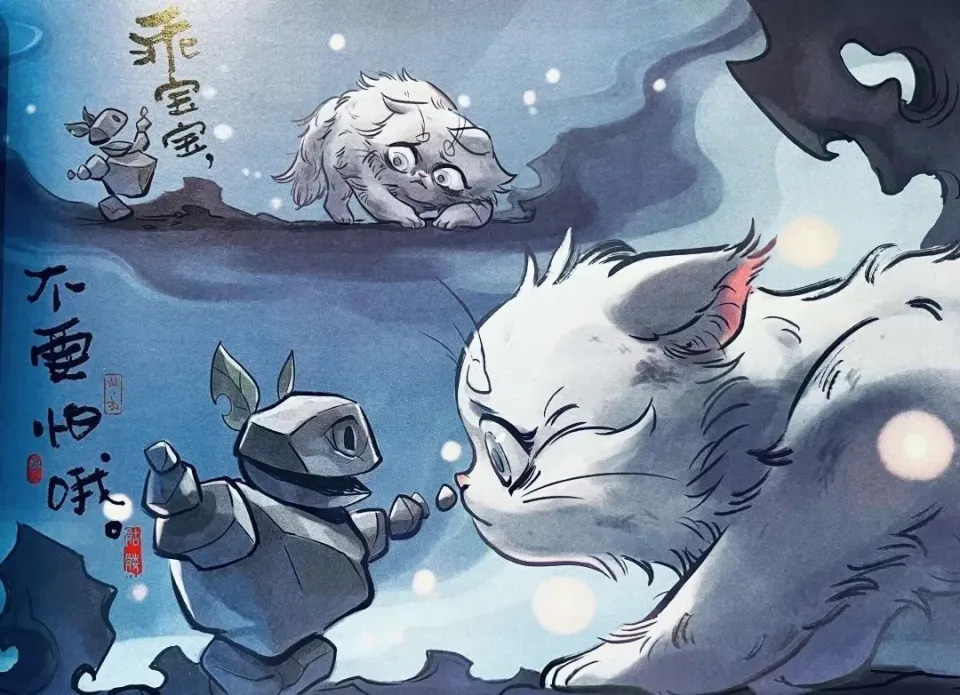 Dans l’album illustré officiel Ne Zha : Chroniques des Trois Mondes, on découvrait ainsi une Shi Ji plus vulnérable : désireuse d’approcher un chat errant, elle prit l’apparence d’une version miniature d’elle-même en pierre pour ne pas l’effrayer. Mais lorsqu’un ours menaça l’animal, elle dut révéler son véritable corps pour le sauver, faisant fuir à la fois l’agresseur et son compagnon félin. Derrière cette silhouette monstrueuse, le récit dévoilait une solitude poignante.